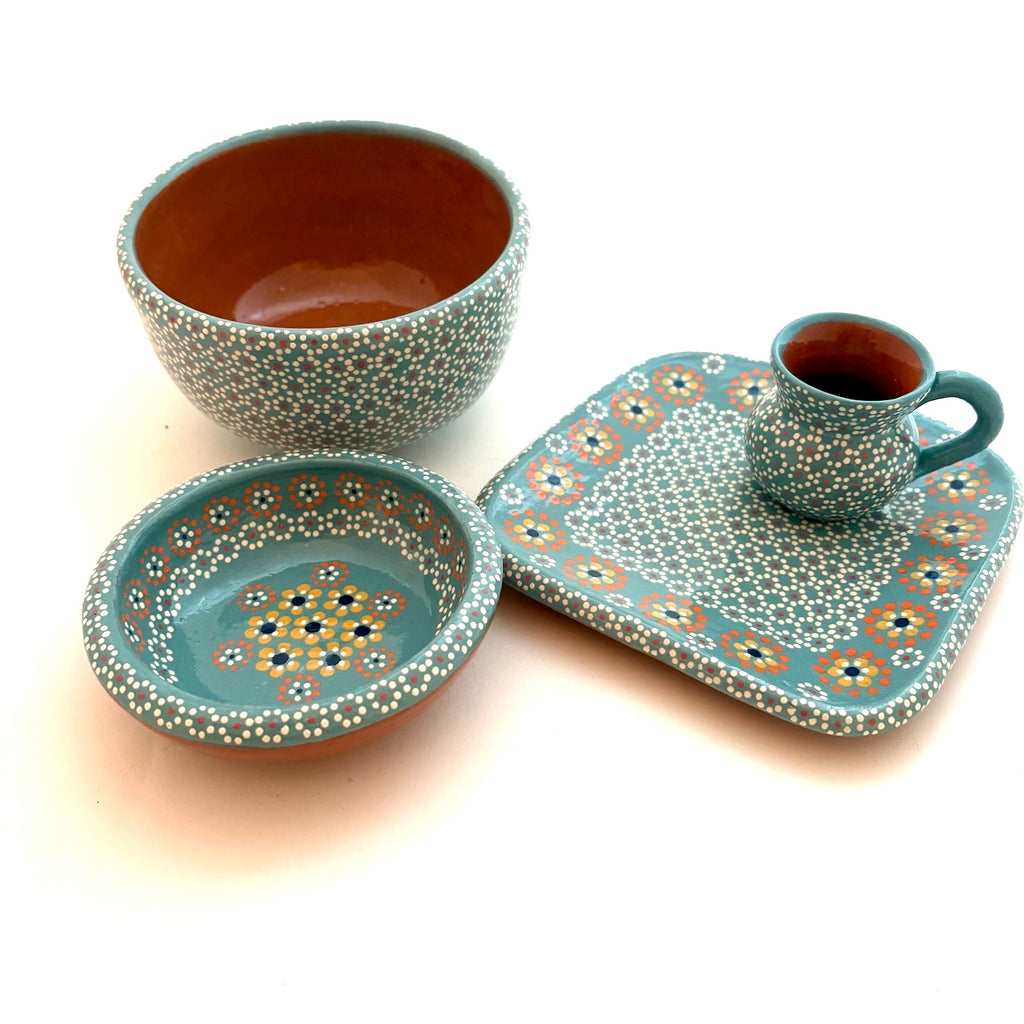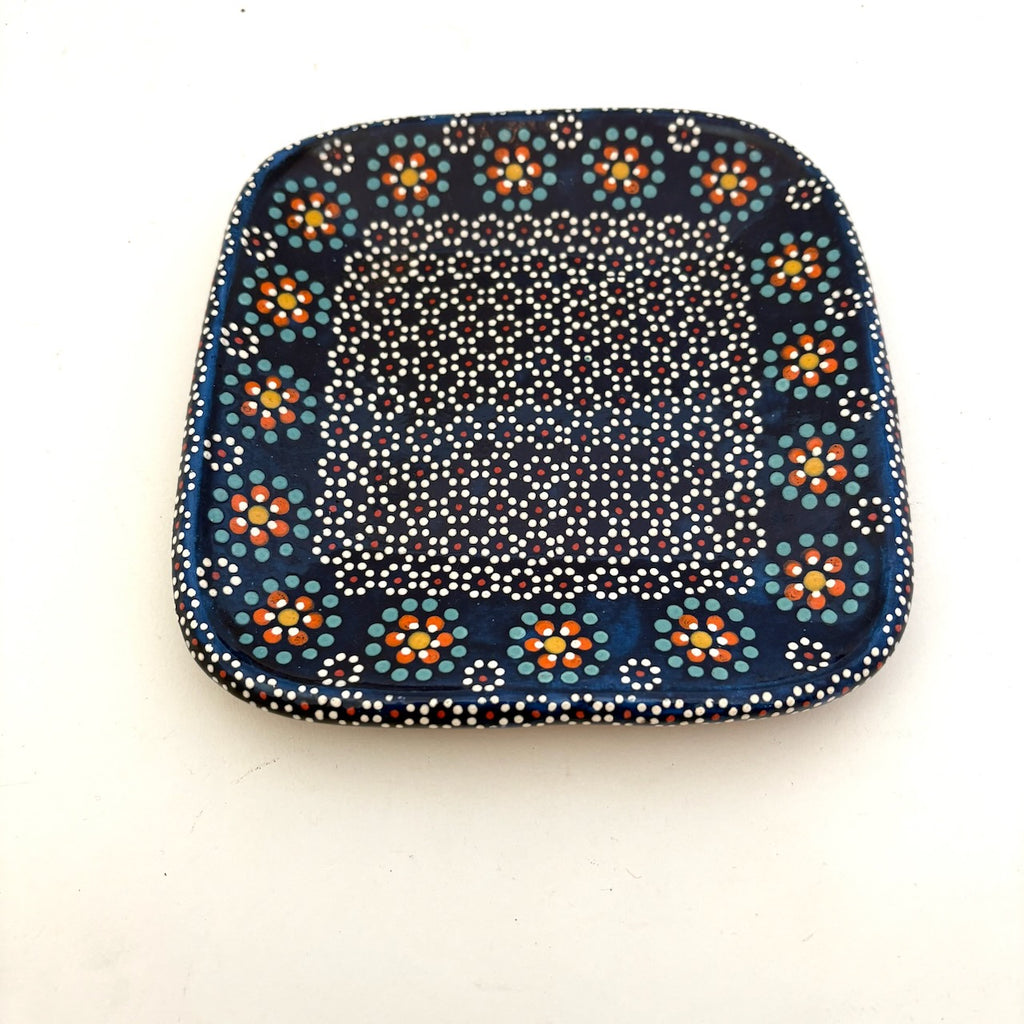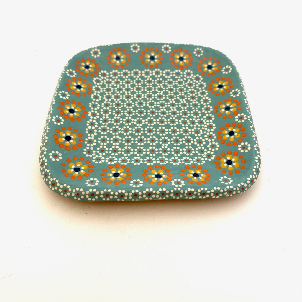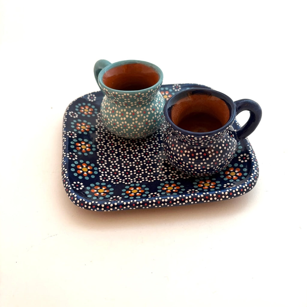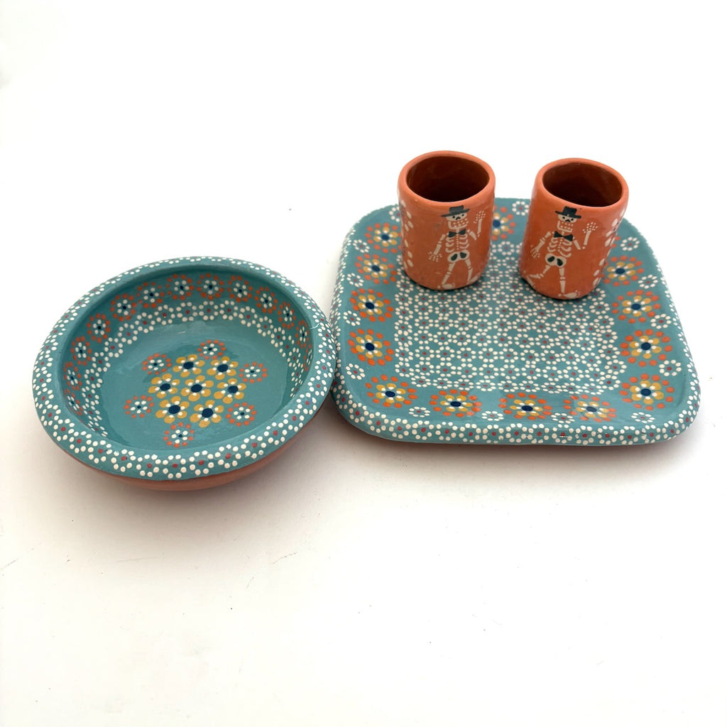 Adorable platitos to accompany your copitas de mezcal! Place slices of oranges or limes as well as special salts next to your cup, or simply use these as a small tray for up to four copitas! We have two color styles that combine nicely with our copitas and bowls--feel free to mix and match!