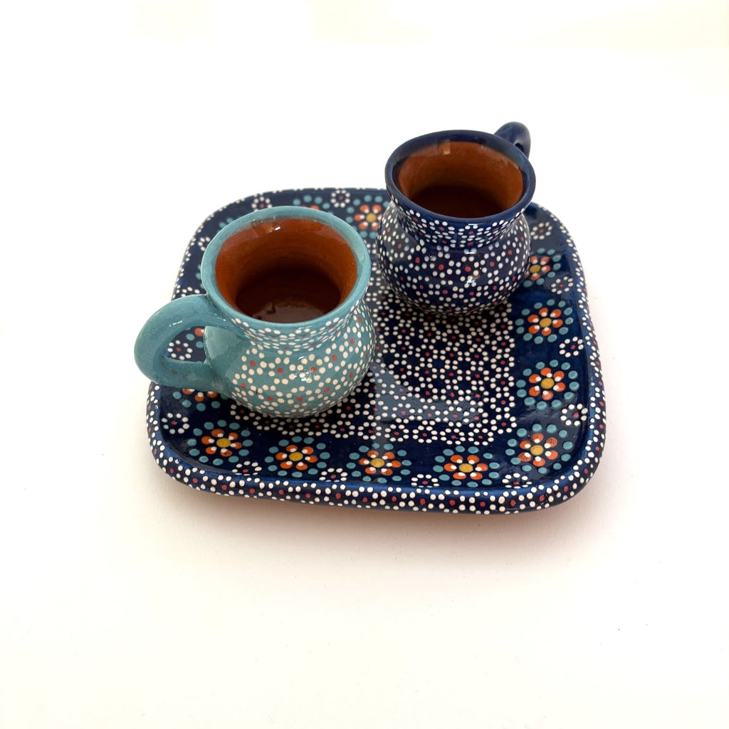 When we've enjoyed a copita of mezcal in Michoacán, sometimes it's often accompanied by cut up fruit and special salts--served on a handmade ceramic plate. We love that idea and decided to put together these pieces that are not only practical, but beautiful! These very popular cups from Capula match nicely with the square platitos and you can mix and match if you like. If you want to purchase several--please contact us and we'll combine shipping charges. You can purchase additional cups here: https://mexico-by-hand.myshopify.com/collections/celebrations/products/clay-mezcal-cups-from-capula