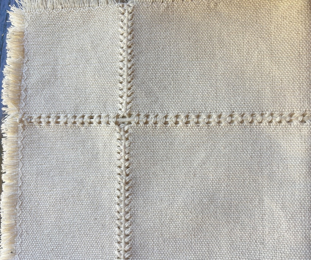 These lovely tablecloths are made by hand on a traditional wooden foot loom (see photo) in a family run workshop in Patzcuaro. These linens can be machine washed and dried and little or no ironing is necessary.